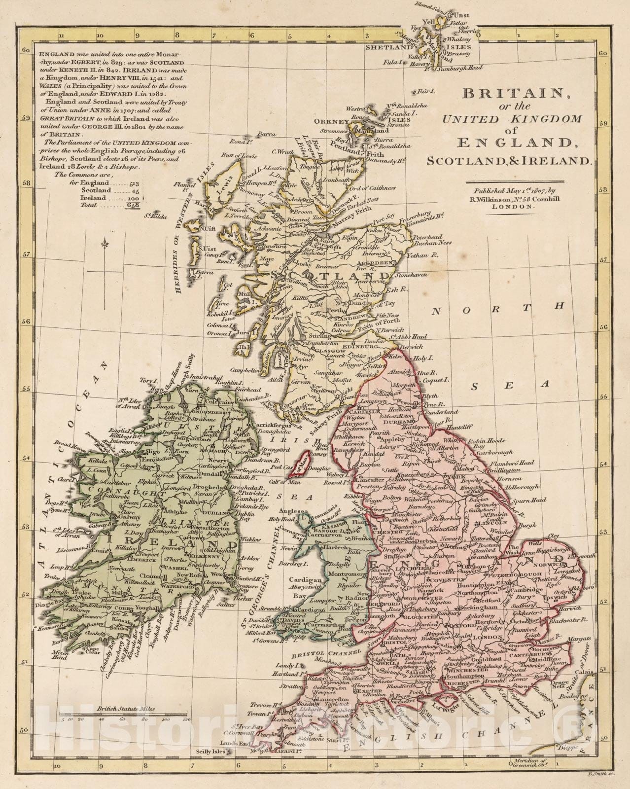 Historic Map - World Atlas - 1808 Britain, or the United Kingdom of England, Scotland, Ireland.