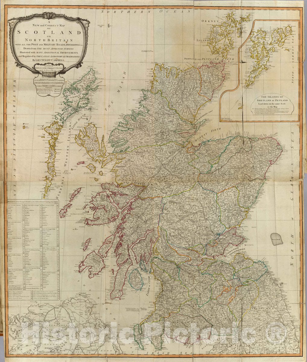 Historic Wall Map : (Composite of) A New and Correct map of Scotland or North Britain with All The Post and Military Roads, divisions & ca, 1794 Atlas -