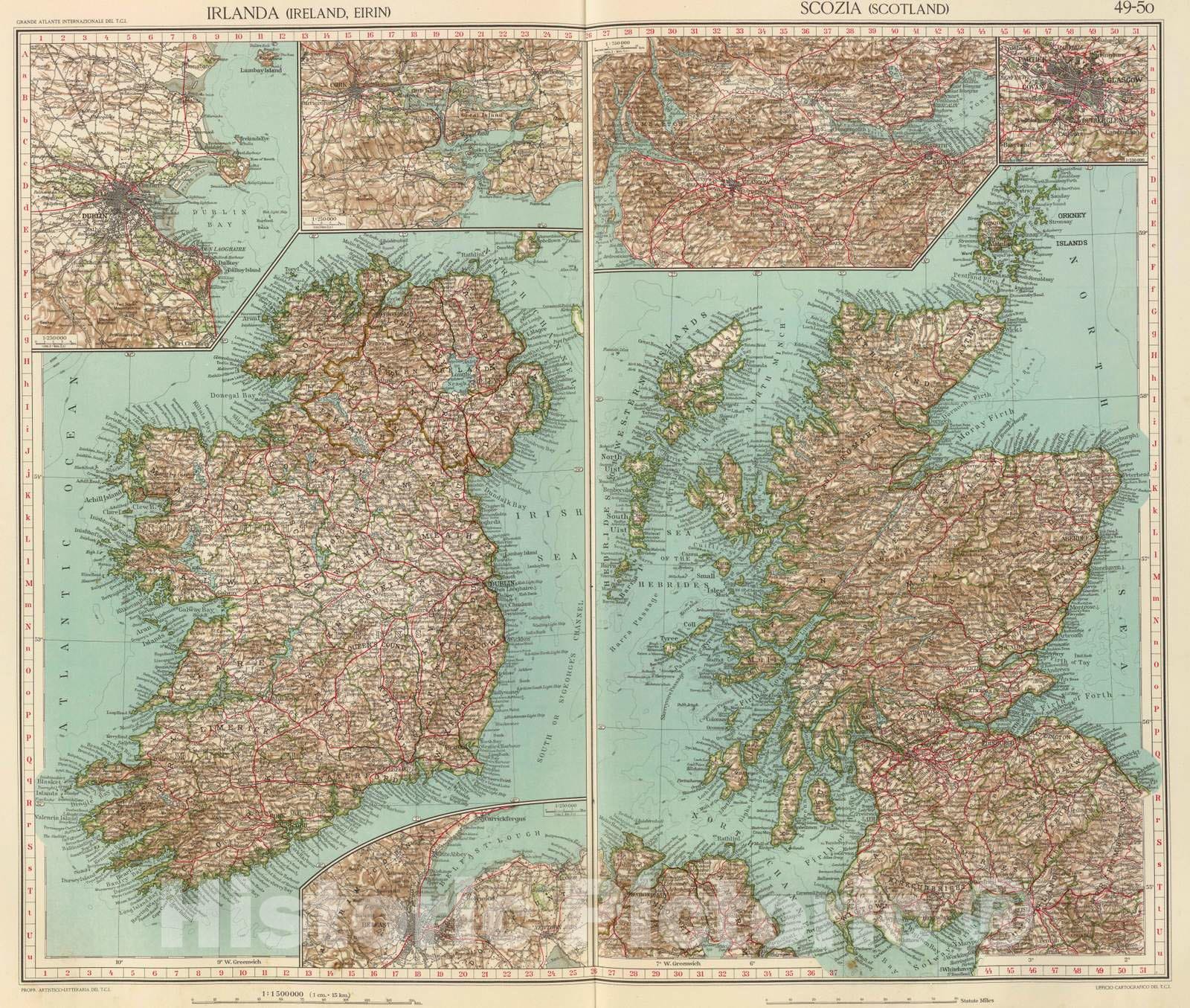 Historic Wall Map : Ireland; Scotland, Dublin Region (Ireland) 1929 49-50. Irlandia, Scozia. , Vintage Wall Art