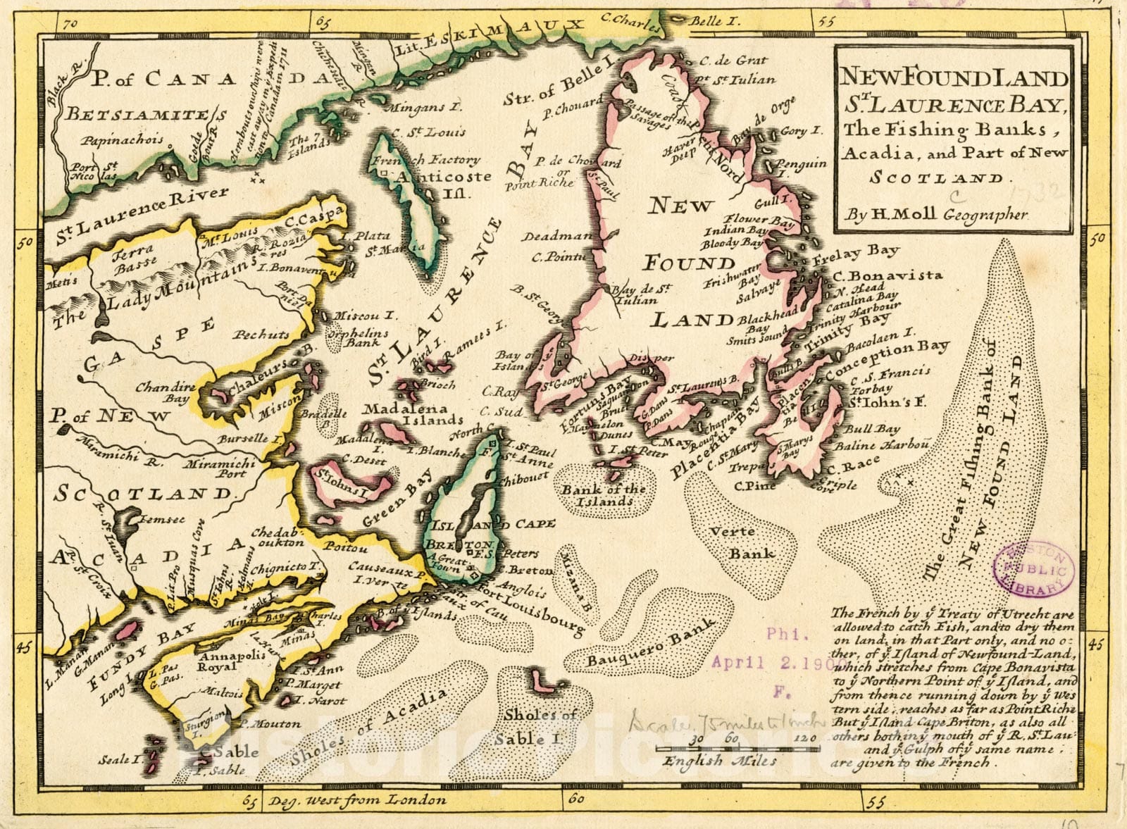 New Found Land, St. Laurence Bay, the fishing banks, Acadia, and part of New Scotland