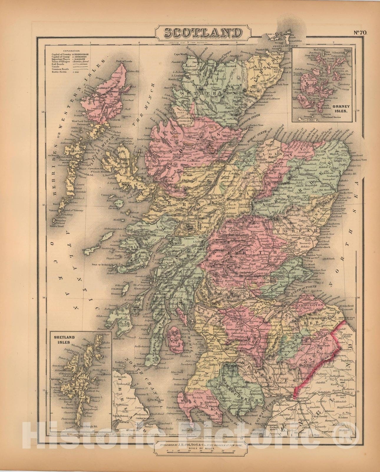 Historic Map : General Atlas (Of The World), Scotland 1857 , Vintage Wall Art