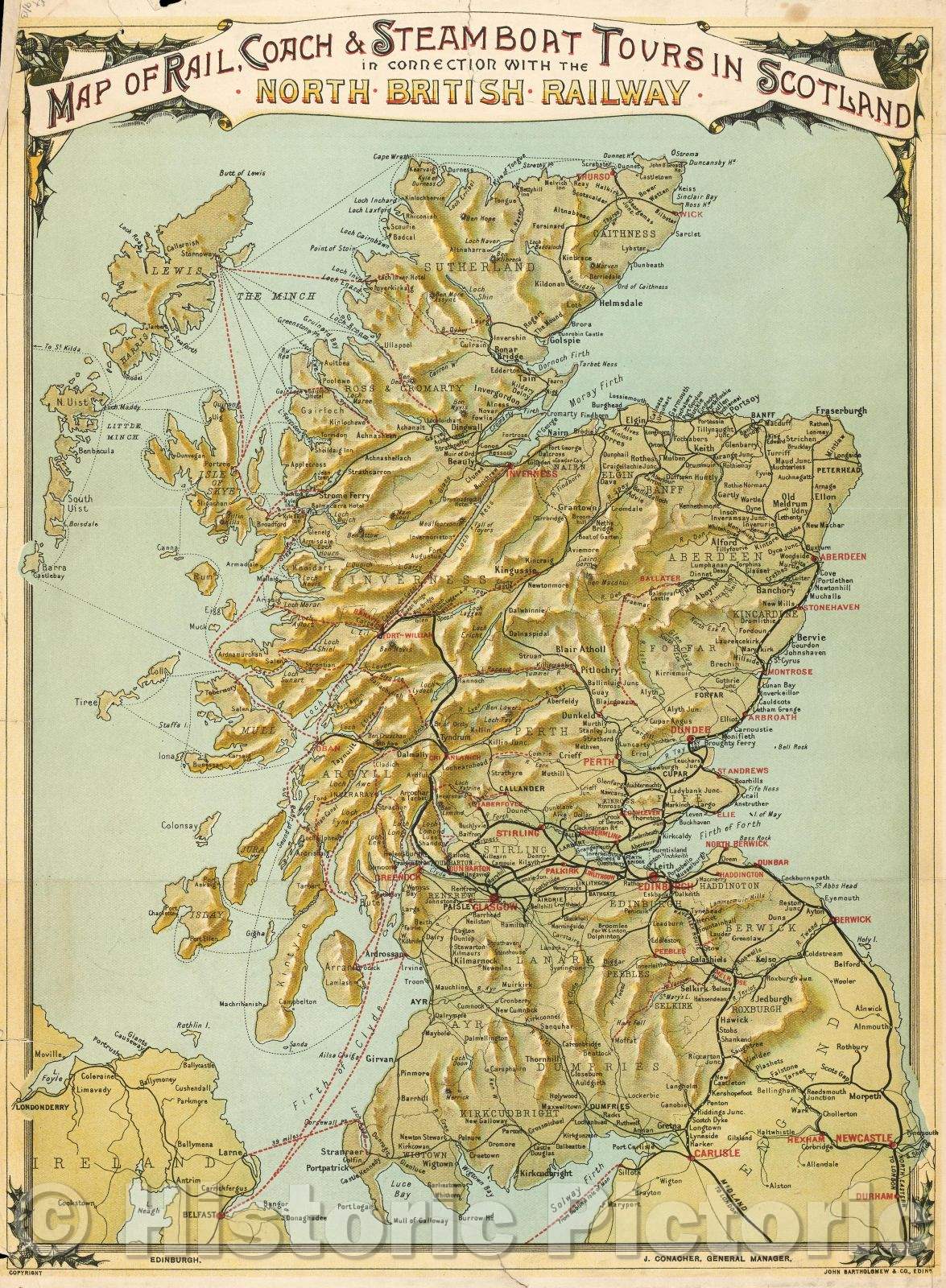 Map of rail, coach and steamboat tours in Scotland in connection with the North British Railway., 1909
