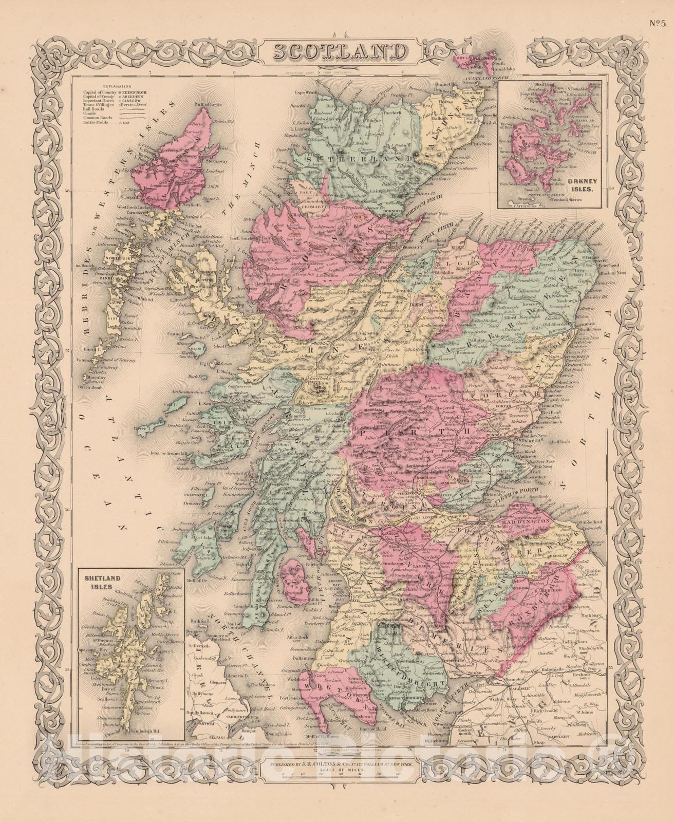 • .Historic Map : Scotland 1856 , Colton's Atlas World , Vintage Wall Art