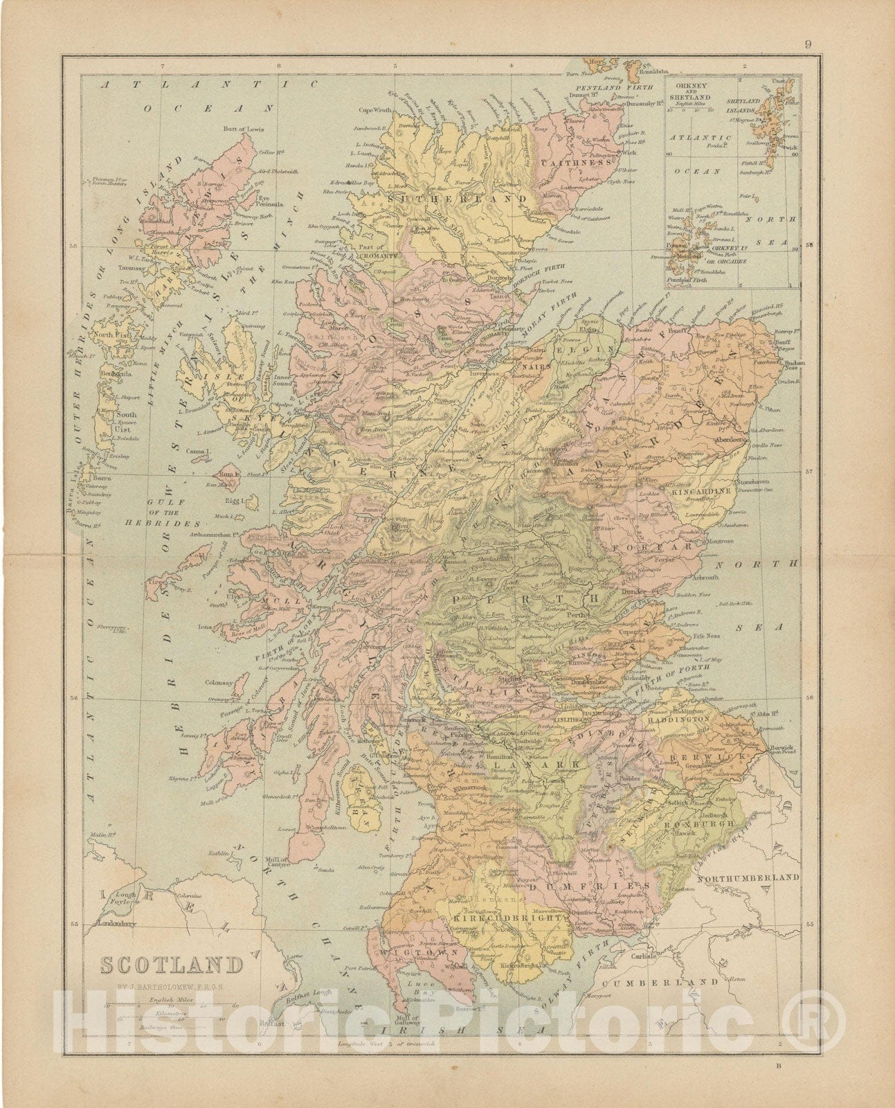 Historic Map : Scotland 1875 , Student Atlas of Modern Geography , Vintage Wall Art