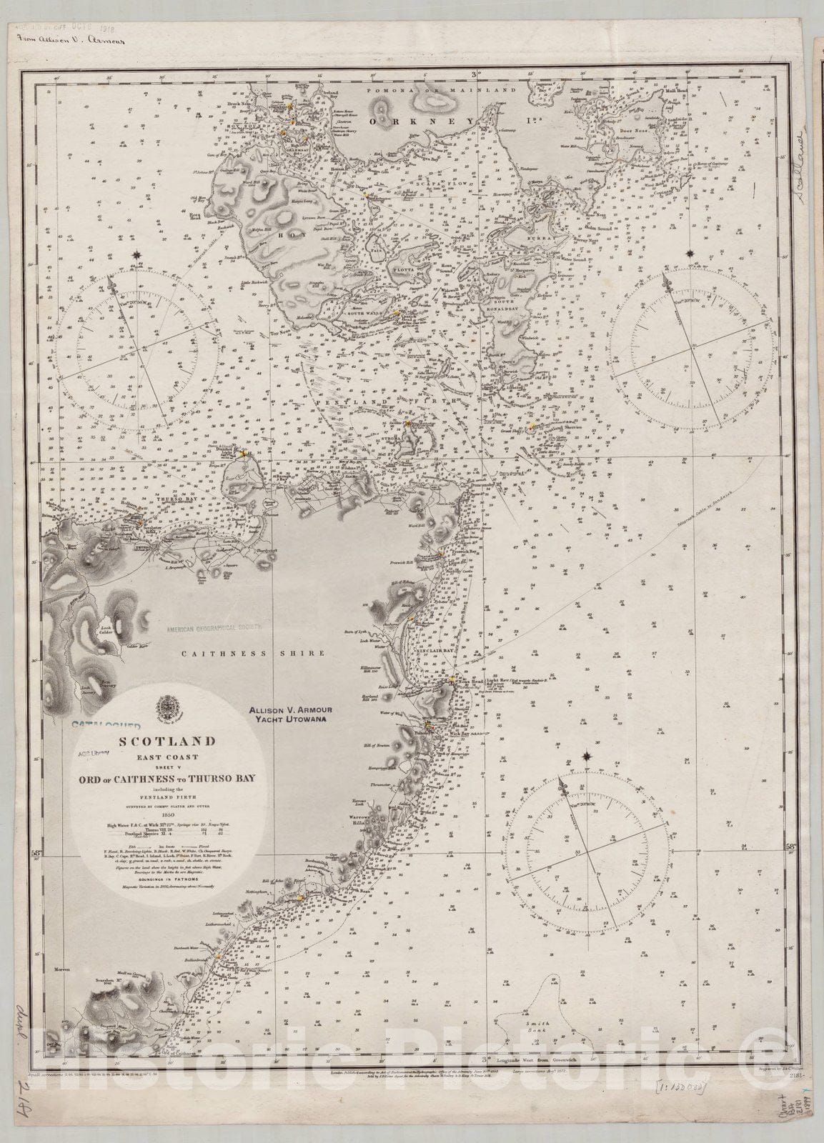 Map : Scotland, east coast 1899, Scotland, east coast, sheet v, Ord of Caithness to Thurso Bay , Antique Vintage Reproduction