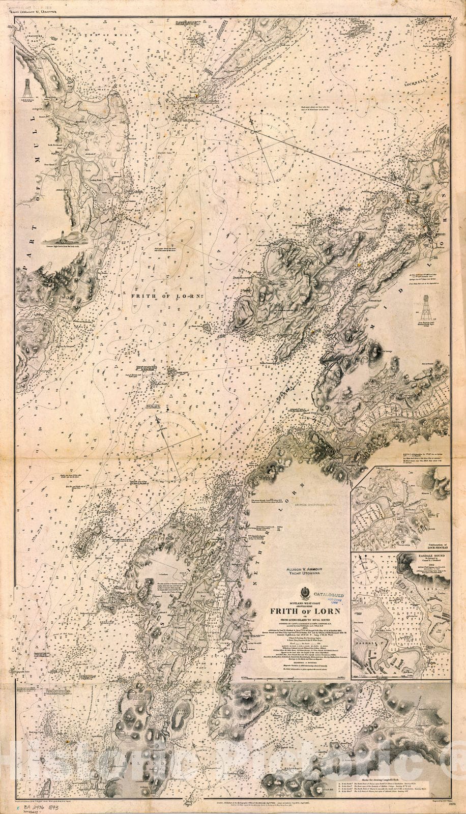 Map : Scotland, West Coast 1893, Scotland west coast, Argyllshire, Frith of Lorn or from Luing Island to Mull Sound , Antique Vintage Reproduction