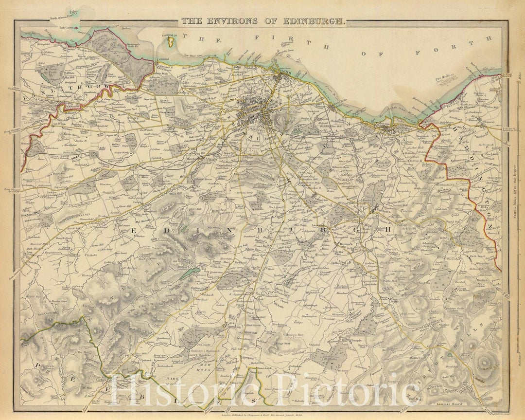 Historic Map : Scotland, Edinburgh Region (Ireland) 1838 Edinburgh environs. , Vintage Wall Art