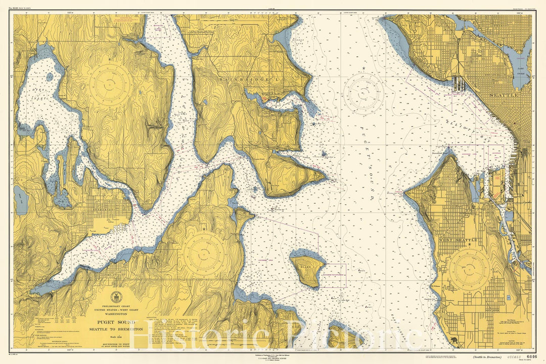 Historic Nautical Map - Seattle To Bremerton, 1948 NOAA Chart - Washington (WA) - Vintage Wall Art