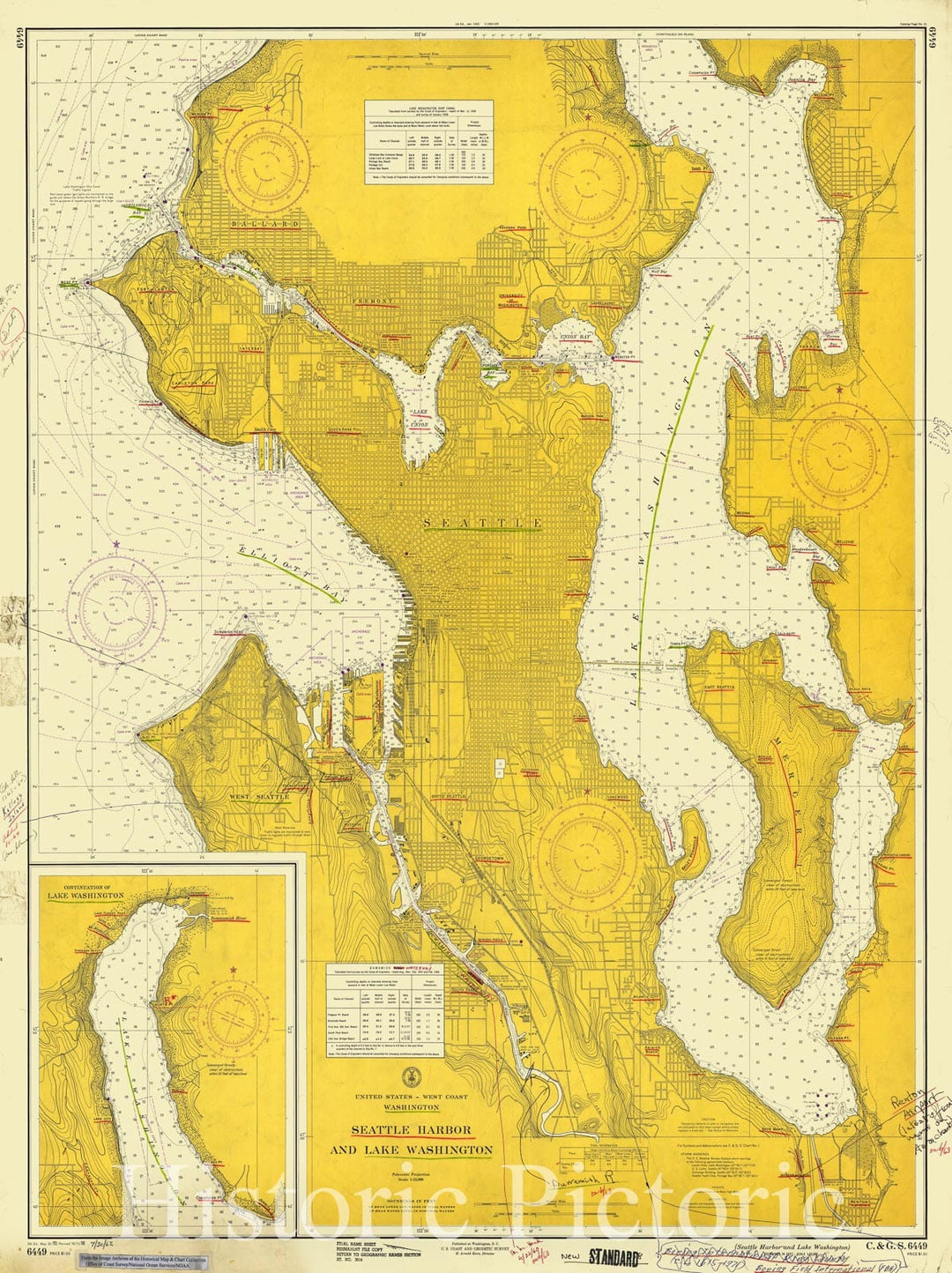 Historic Nautical Map - Seattle Harbor & Lake Washington, 1958 NOAA Chart - Washington (WA) - Vintage Wall Art
