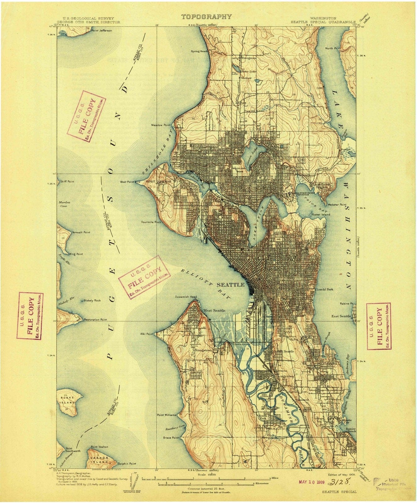 • .1909 Seattle Special, WA - Washington - USGS Topographic Map
