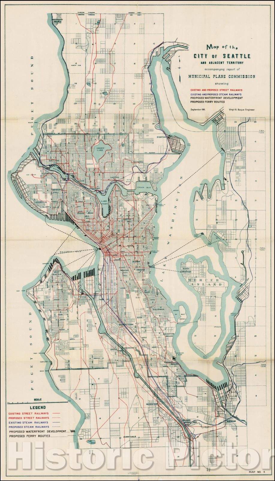 Historic Map - Map of the City of Seattle and Adjacent Territory accompany report of Municipal Plans Commission showing Existing and Proposed Railways, 1911 v1