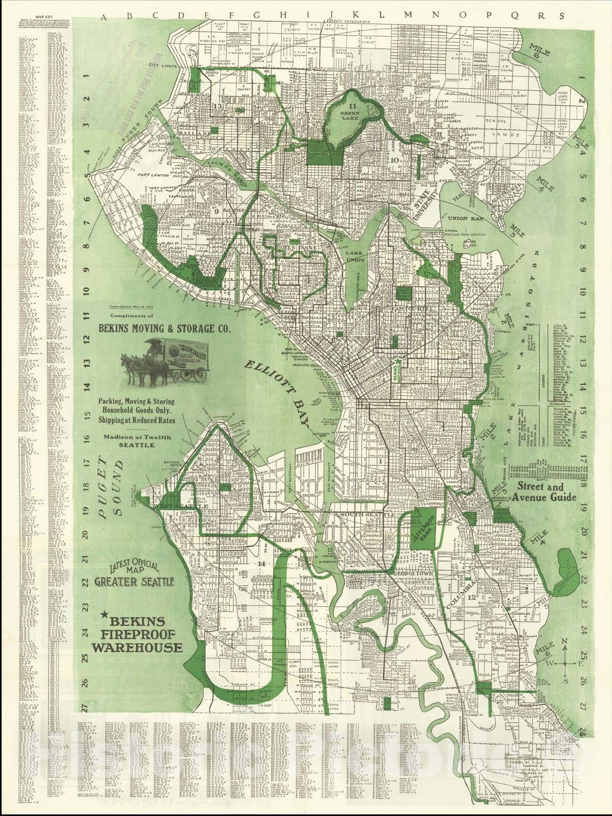 Historic Map : Latest Official Map of Greater Seattle, 1913, Kroll Map Company, v1, Vintage Wall Art