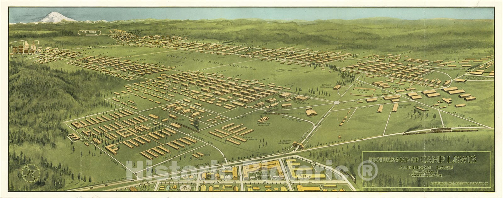 Historic Map : Picture -Map of Camp Lewis American Lake (Tacoma) Washington, 1918, Seattle Engraving Company, Vintage Wall Art