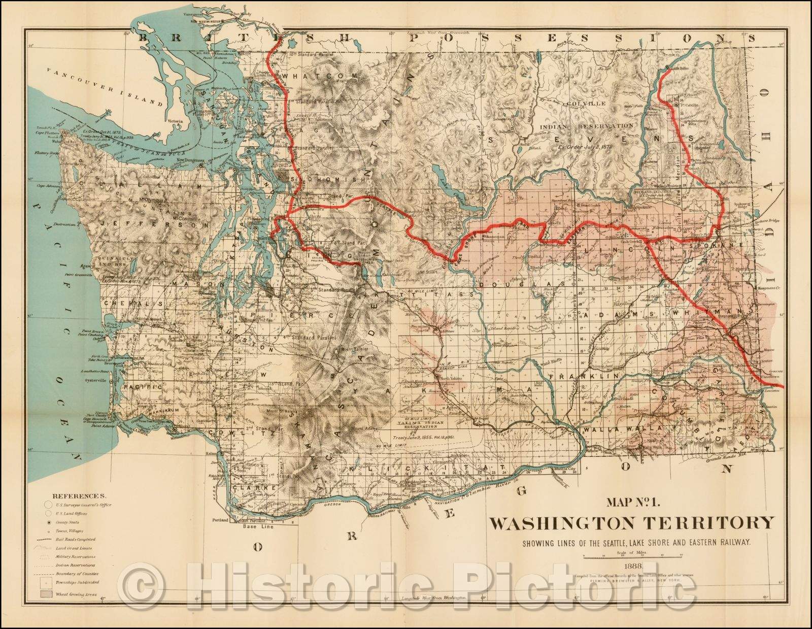 Historic Map - Washington Territory Showing Lines of Seattle, Lake Shore and Eastern Railway, 1888, Flemming, Brewster & Alley - Vintage Wall Art