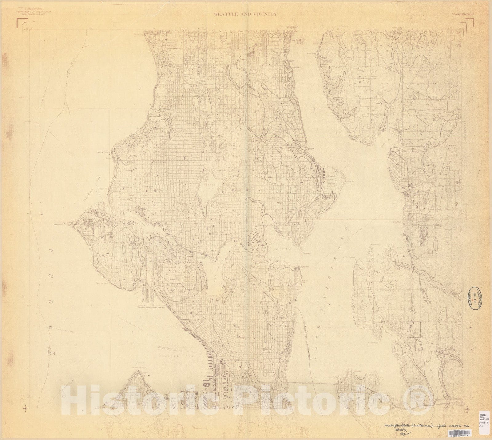 Map : Preliminary geologic map of Seattle and vicinity, Washington, 1961 Cartography Wall Art :