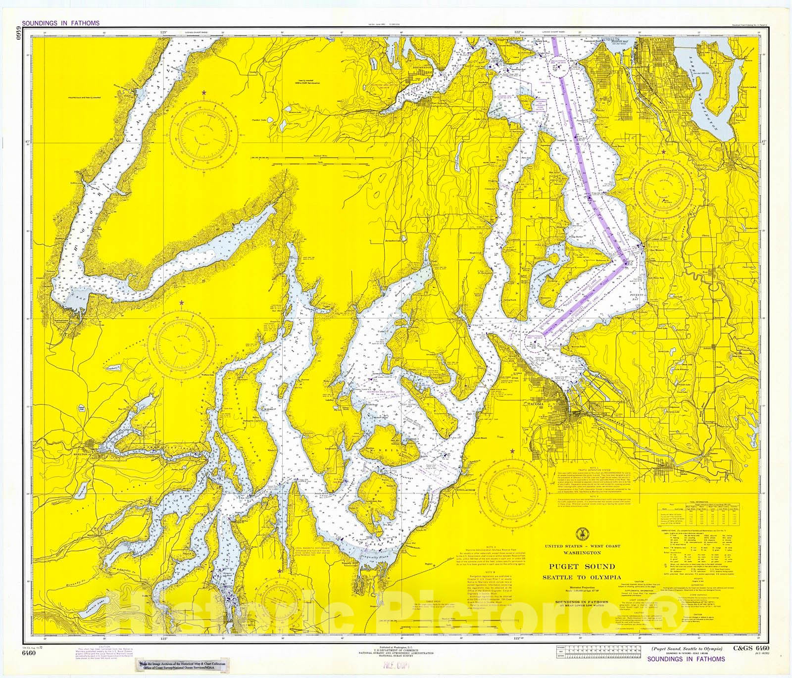 Historic Nautical Map - Puget Sound, Seattle To Olympia, 1972 NOAA Chart - Washington (WA) - Vintage Wall Art