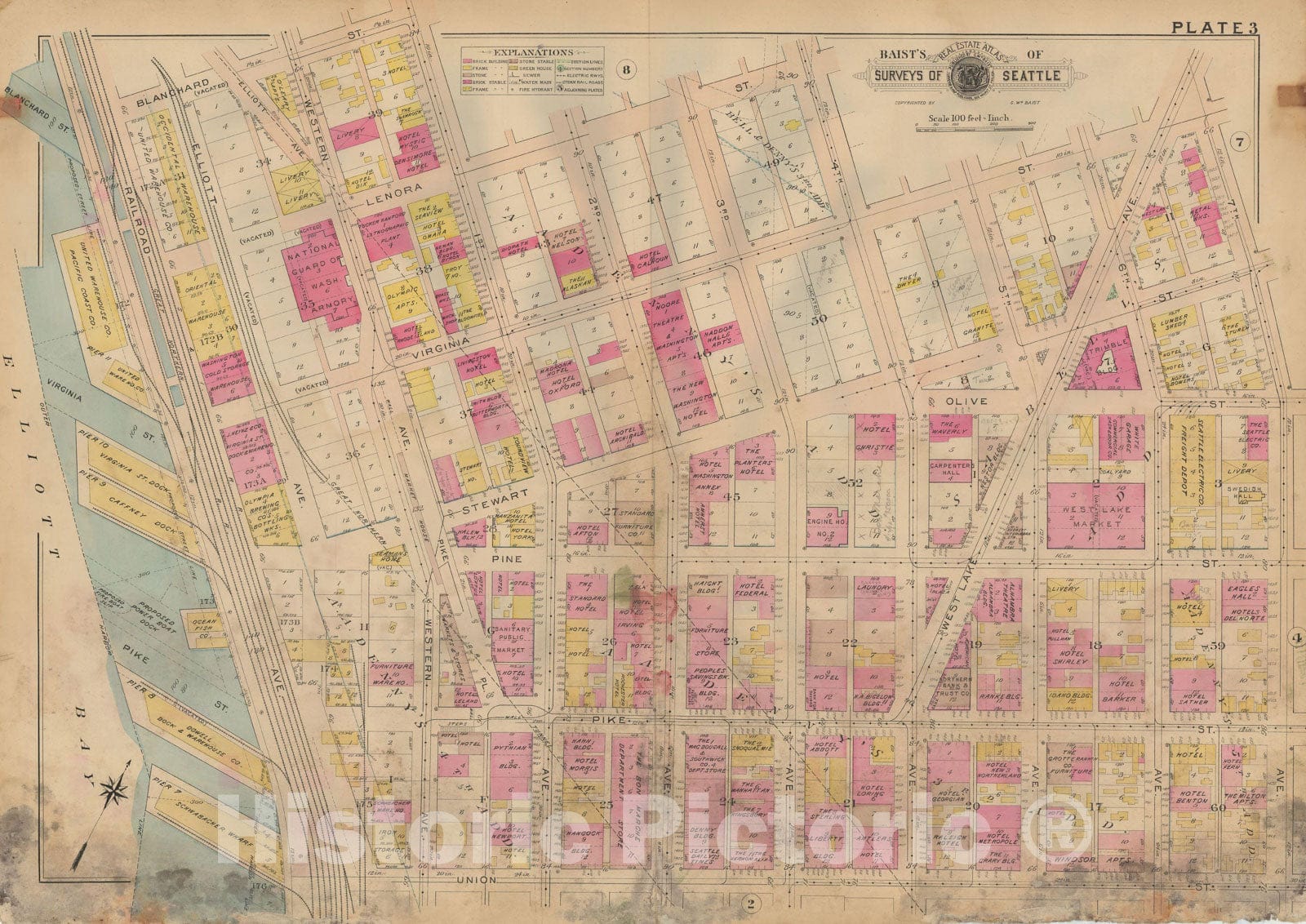 Historic Map : Real Estate Atlas of Surveys of Seattle, Seattle 1912 Plate 003 , Vintage Wall Art