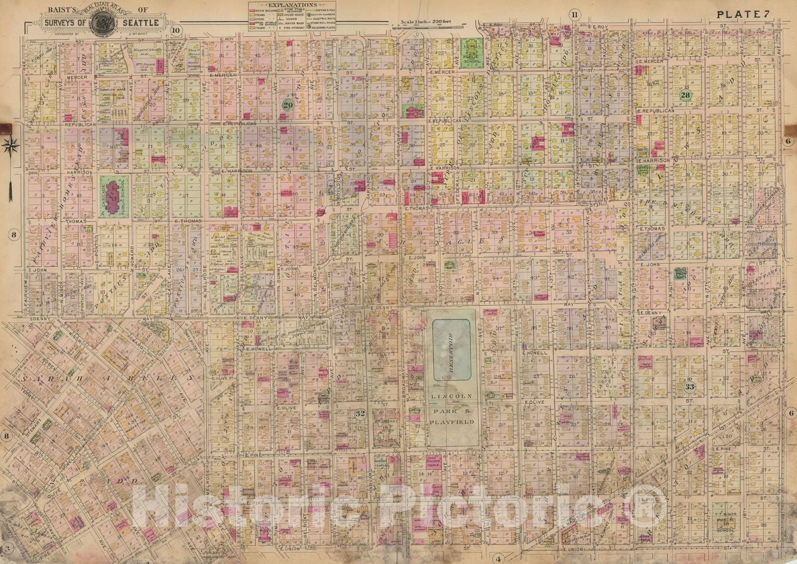 Historic Map : Real Estate Atlas of Surveys of Seattle, Seattle 1912 Plate 007 , Vintage Wall Art