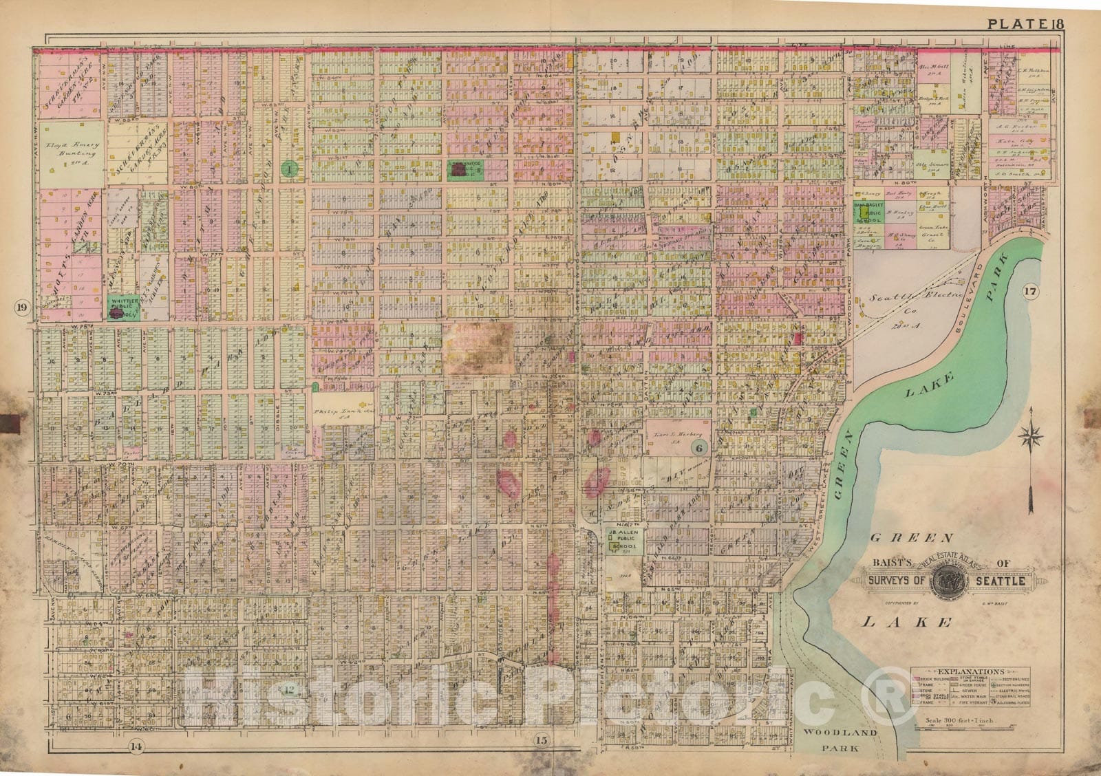 Historic Map : Real Estate Atlas of Surveys of Seattle, Seattle 1912 Plate 018 , Vintage Wall Art