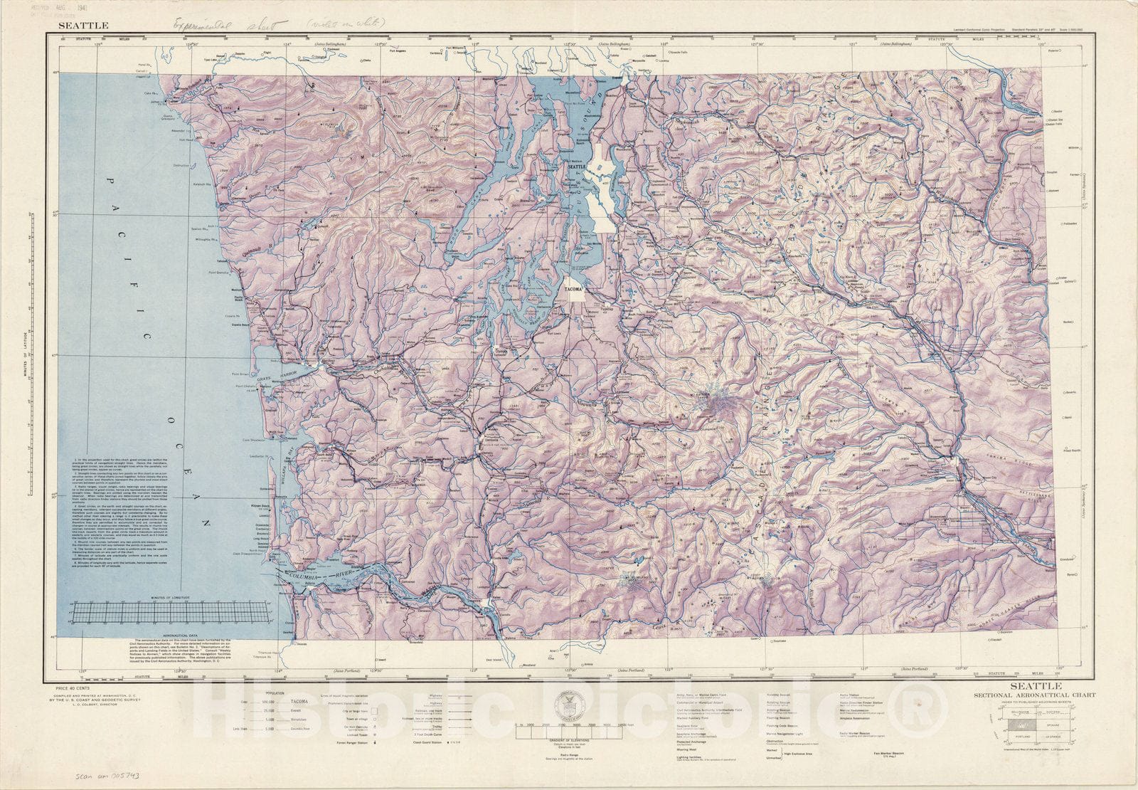 • Map : Seattle, Washington 1941 1, Seattle sectional aeronautical chart [violet on white] , Antique Vintage Reproduction