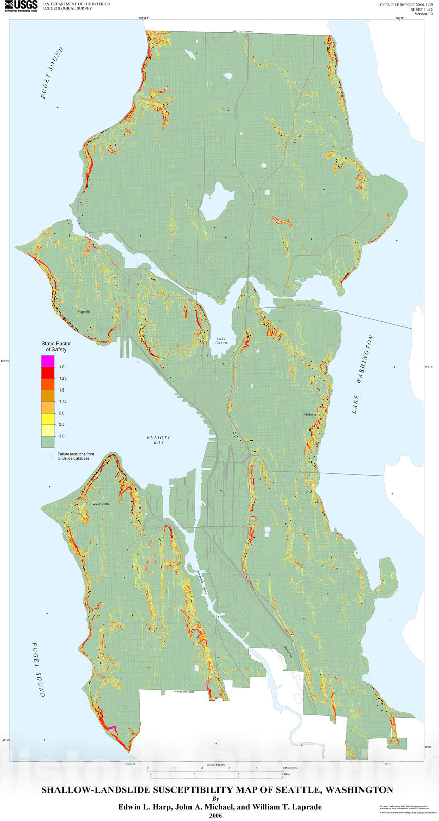 Map : Shallow-landslide hazard map of Seattle, Washington, 2006 Cartography Wall Art :
