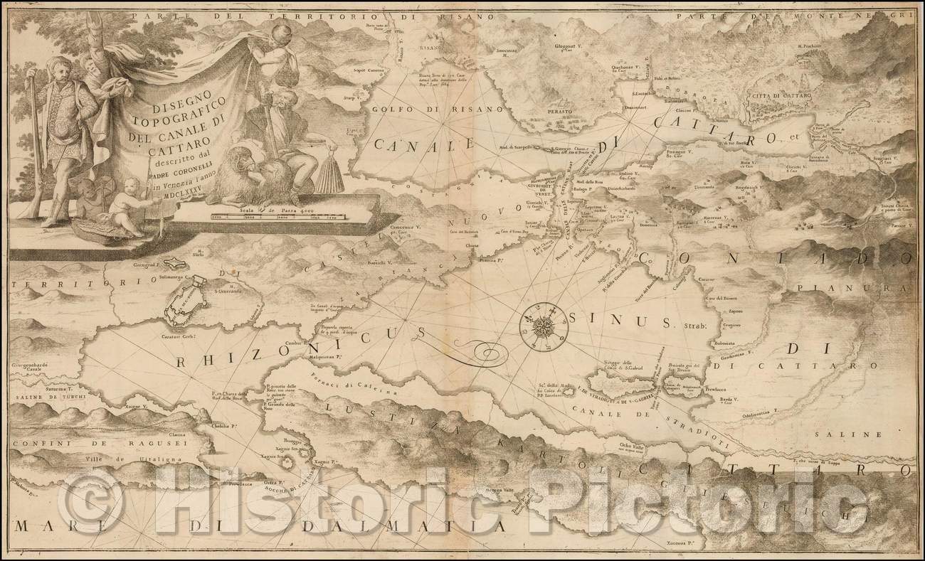 Historic Map - Disegno Topografico Del Canale Di Cattaro/Gulf of Venice and Sea of Dalmatia, Hercag-Novi Region of Serbia and Montenegro, 1685 - Vintage Wall Art