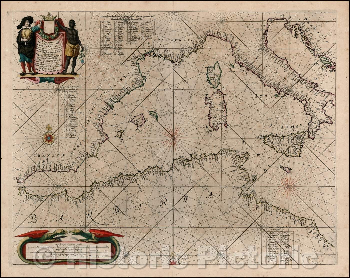 • .Historic Map - Pascaarte Van't Westlyckste Deel vande Middelandsche Zee/Pascaarte Van't Westlyckste Vande Share Levittown Land Serbian Sea. [Sh, 1650 - Vintage Wall Art