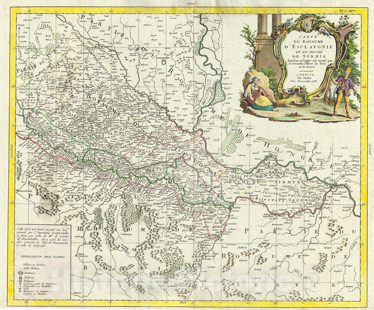 Historic Map : Santini Map of The Kingdom of Slavonia (Croatia, Serbia, Bosnia), 1783, Vintage Wall Art