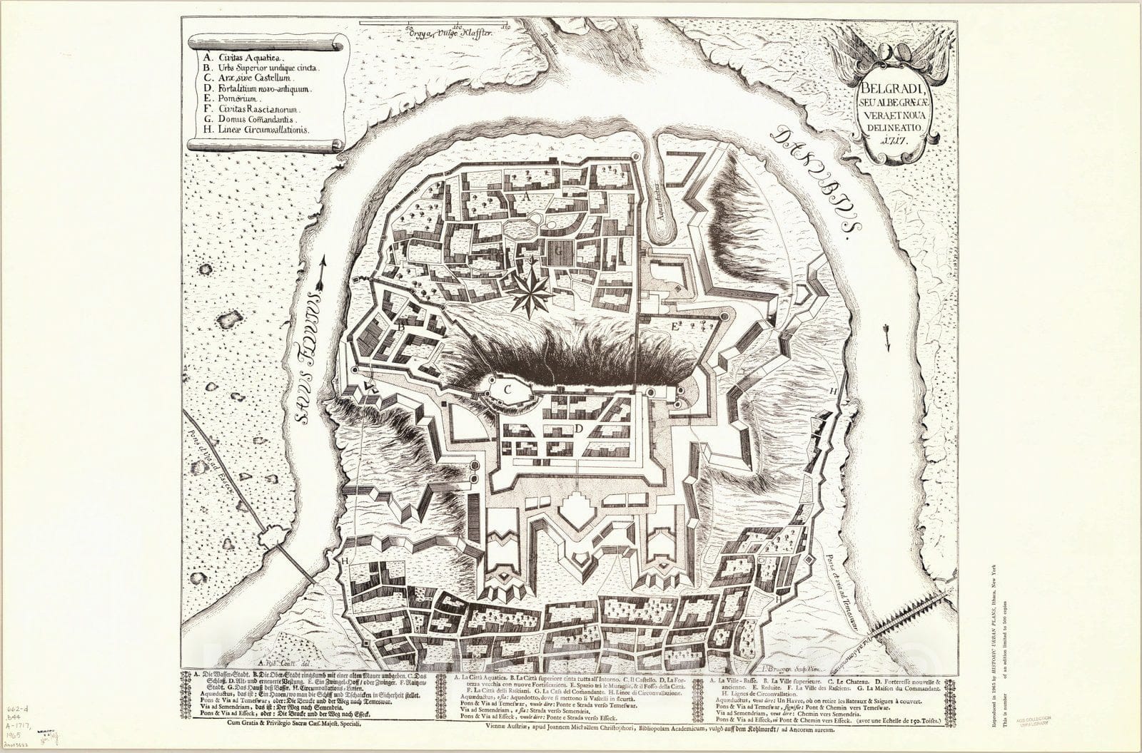 Map : Belgrade, Serbia 1717 1965, Belgradi : seu albe gr??vera, et noua delineatio , Antique Vintage Reproduction