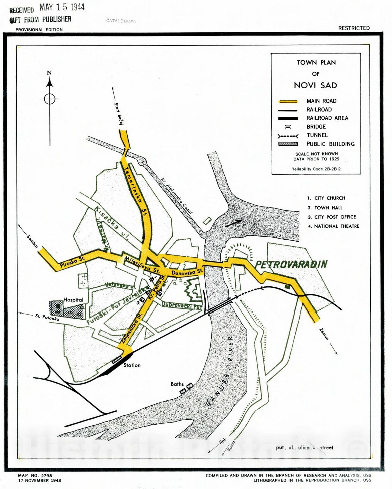 Town plan of Novi Sad / compiled and drawn in the Branch of Research and Analysis, OSS