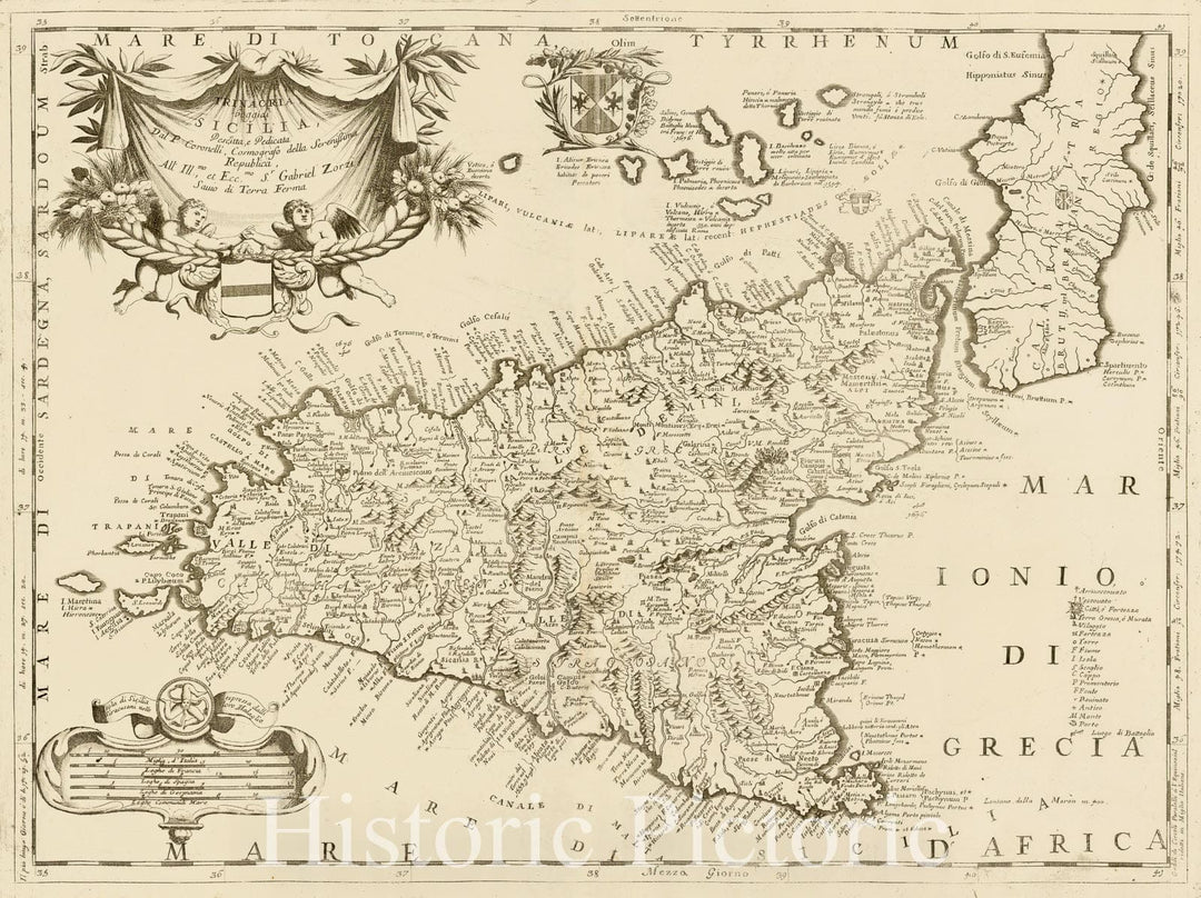 Historic Map - Trinacria hoggidi Sicilia/Trinacria hoggidi Sicily, 1695, Vincenzo Maria Coronelli - Vintage Wall Art
