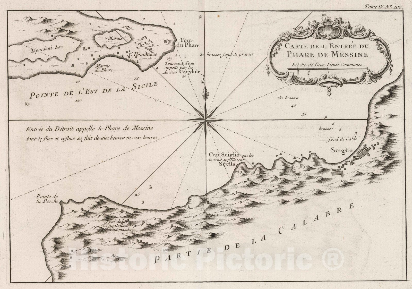 Italy, Sicily (Italy), Europe 1764 Carte de l'Entree du Phare de Messine , Vintage Wall Art