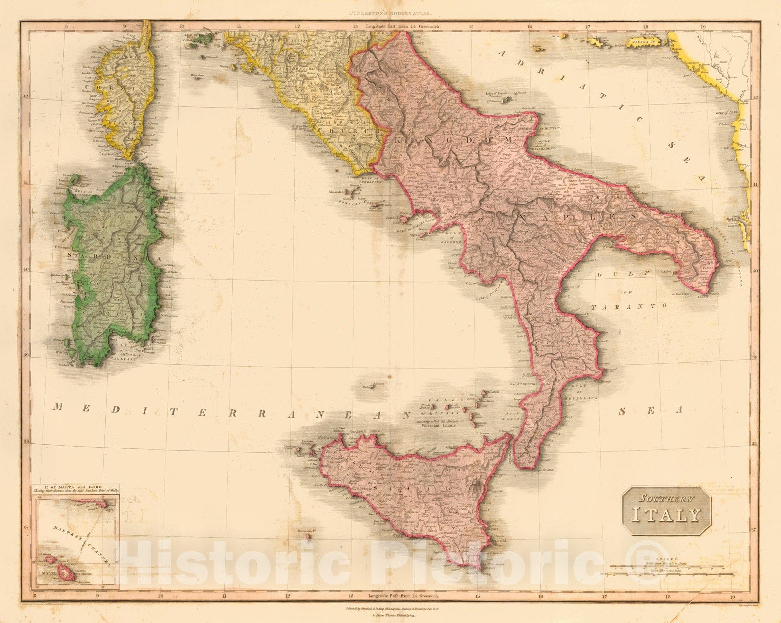 Historic Map - Southern Italy [with Sicily], 1815, John Pinkerton - Vintage Wall Art