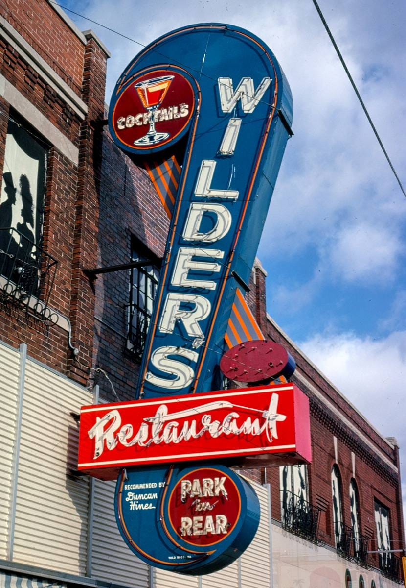 Historic Photo : 1979 Wilder Restaurant sign, Main Street (Route 66?), Joplin, Missouri | Margolies | Roadside America Collection | Vintage Wall Art :