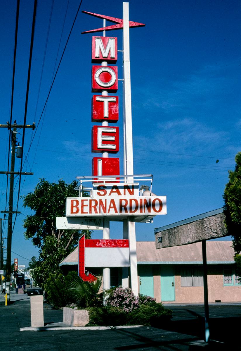 Historic Photo : 2003 San Bernardino Motel sign, Route 66 (Foothill Boulevard), San Bernardino, California | Margolies | Roadside America Collection | Vintage Wall Art :