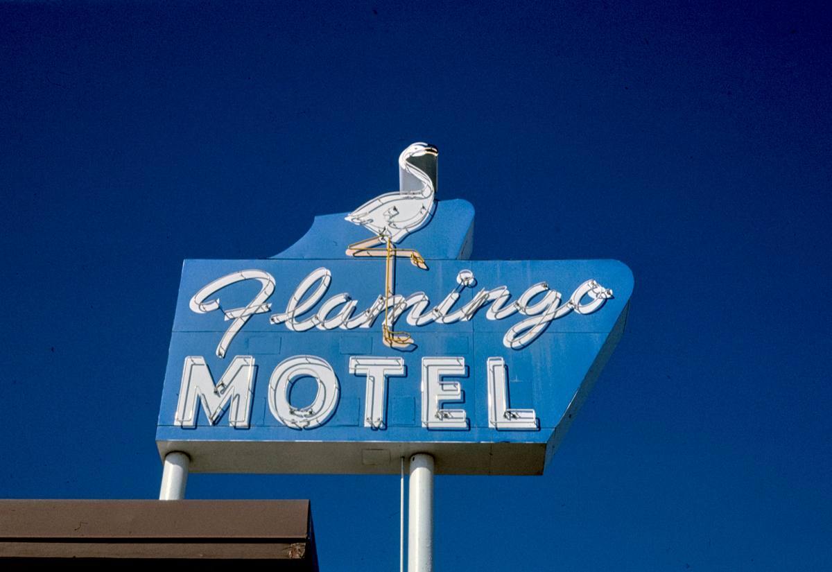 Historic Photo : 1994 Flamingo Motel sign, Route 24, State Avenue, Kansas City, Kansas | Margolies | Roadside America Collection | Vintage Wall Art :