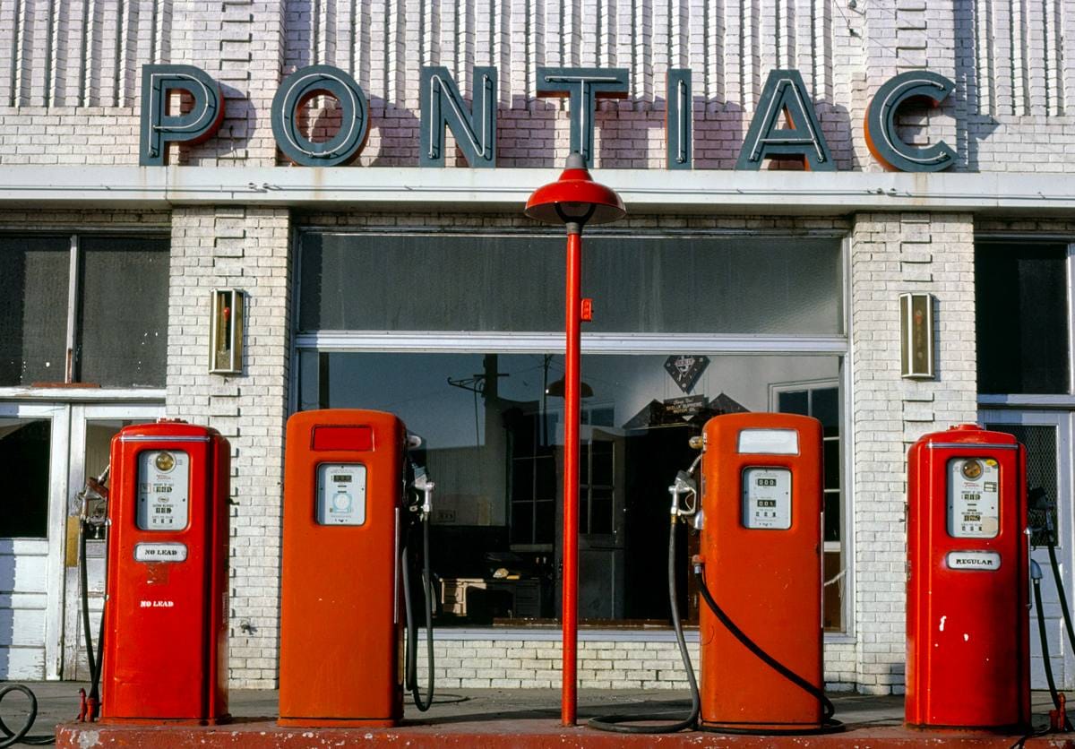 • .Historic Photo : 1980 Four gas pumps, Weld County Garage, Rt. 85, Greeley, Colorado | Margolies | Roadside America Collection | Vintage Wall Art :