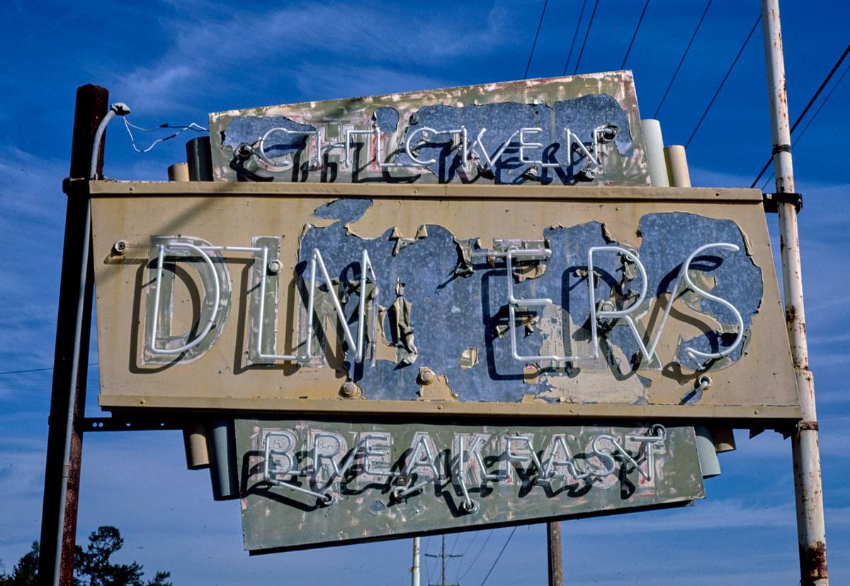Historic Photo : 1985 Dining Cars Cafe sign, Frontage Road, Route 101, Buellton, California | Margolies | Roadside America Collection | Vintage Wall Art :
