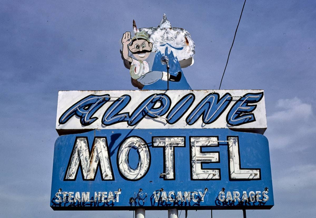 • .Historic Photo : 1987 Alpine Motel sign, Route 66, Flagstaff, Arizona | Margolies | Roadside America Collection | Vintage Wall Art :