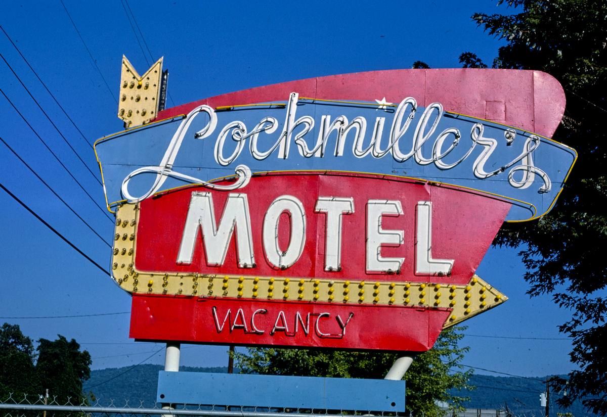 Historic Photo : 1986 Lockmiller's Motel sign, Chattanooga, Tennessee | Margolies | Roadside America Collection | Vintage Wall Art :