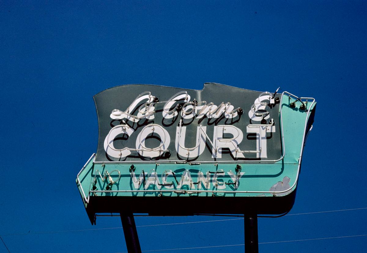 Historic Photo : 1980 La Corn E Court sign, Route 148, Corning, Iowa | Margolies | Roadside America Collection | Vintage Wall Art :