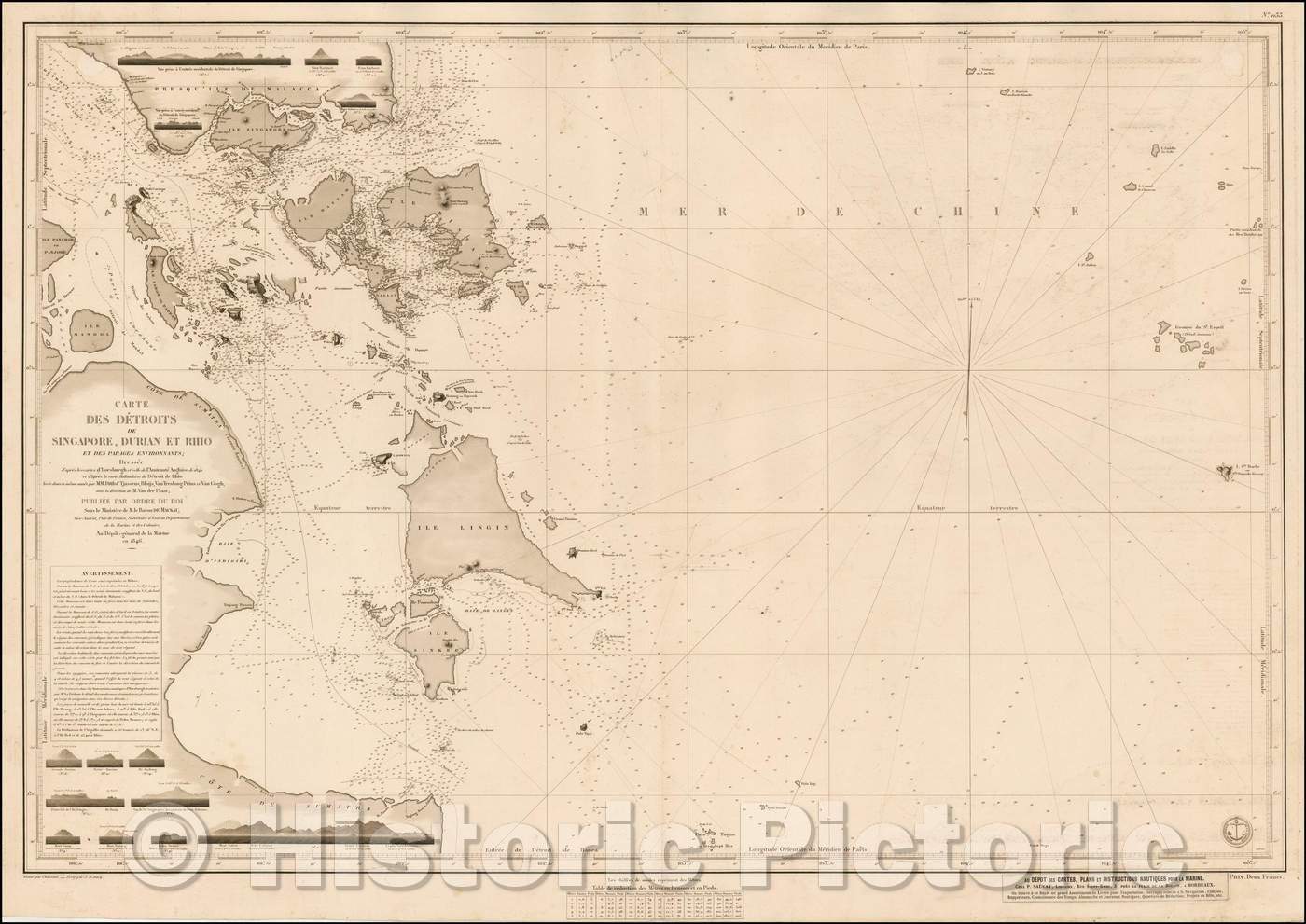 Historic Map - Carte Des Detroits de Singapore, Durian et Rhio et des parages environnant :: Detroits Singapore, Durian and Rhio, 1846 - Vintage Wall Art