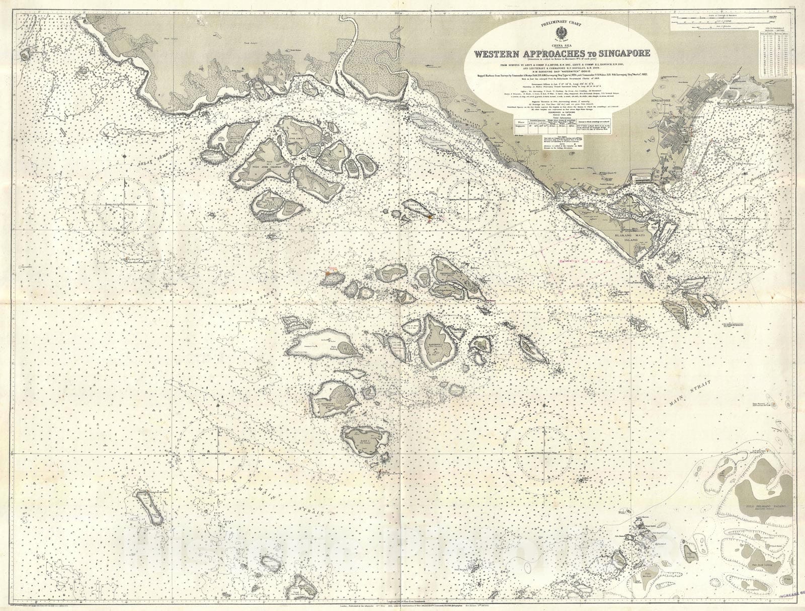 Historic Map : Nautical Chart Singapore City and Western Approaches, 1923, Vintage Wall Art