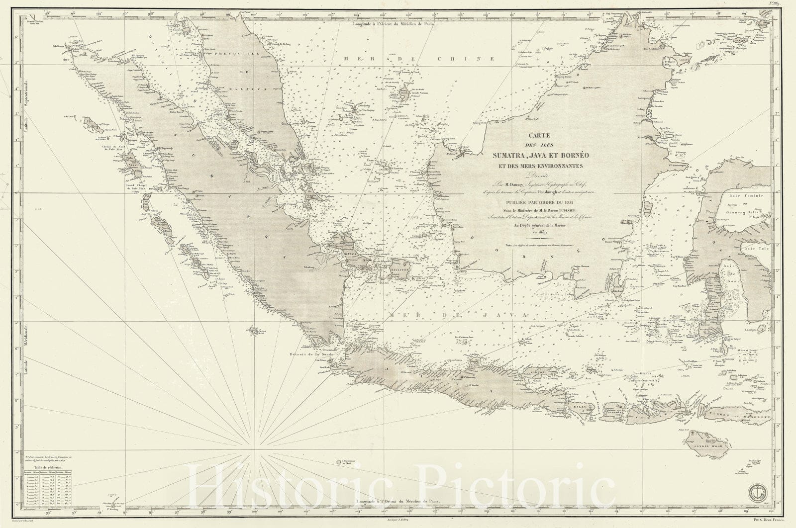 • Historic Map : Nautical Chart Singapore Strait, U.S. Navy Hydrographic Office, 1945, Vintage Wall Art