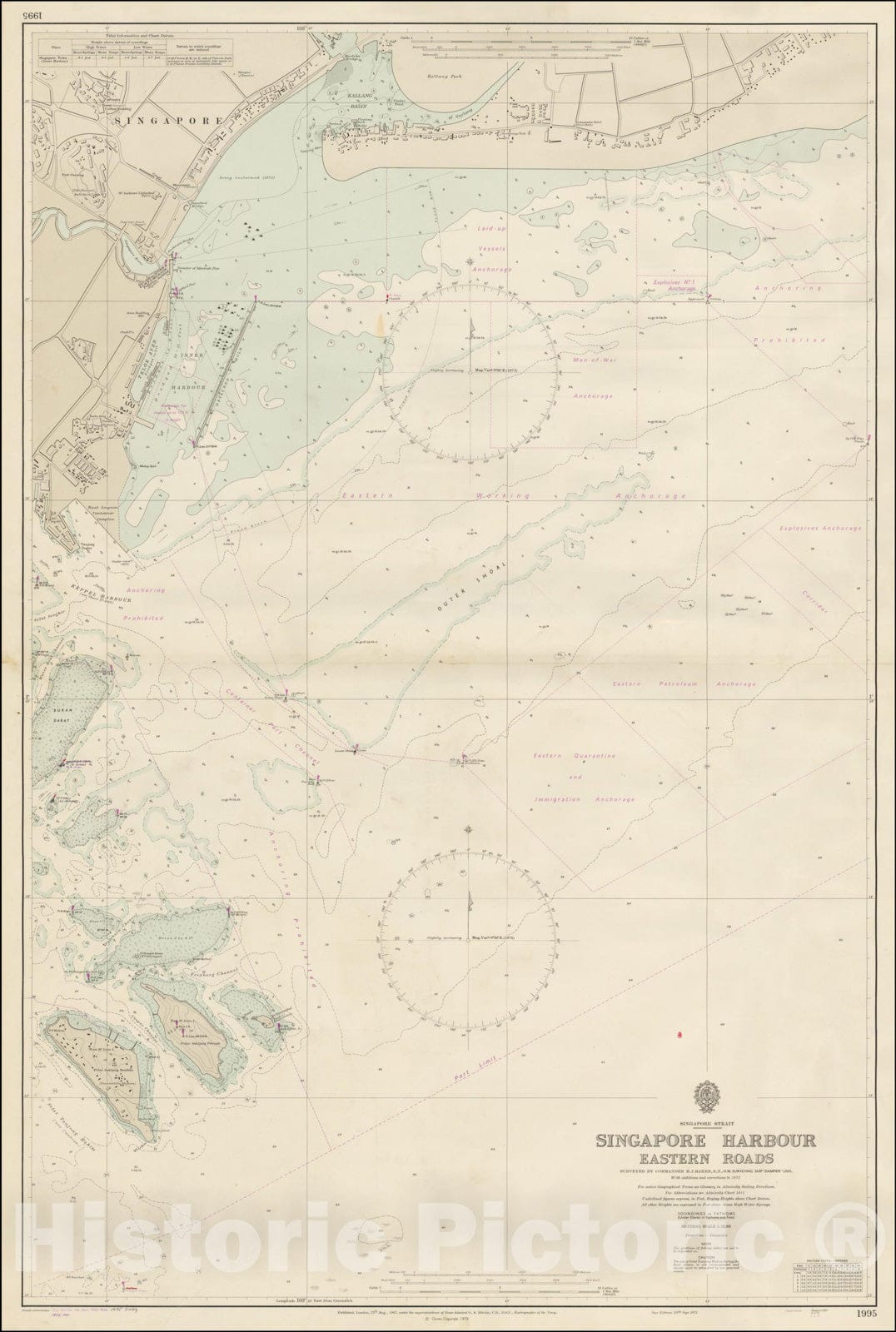 Historic Map : Singapore Harbour Eastern Roads. Surveyed by Commander M.J. Barker, R.N., H.M. Surveying Ship, 1976, British Admiralty, Vintage Wall Art