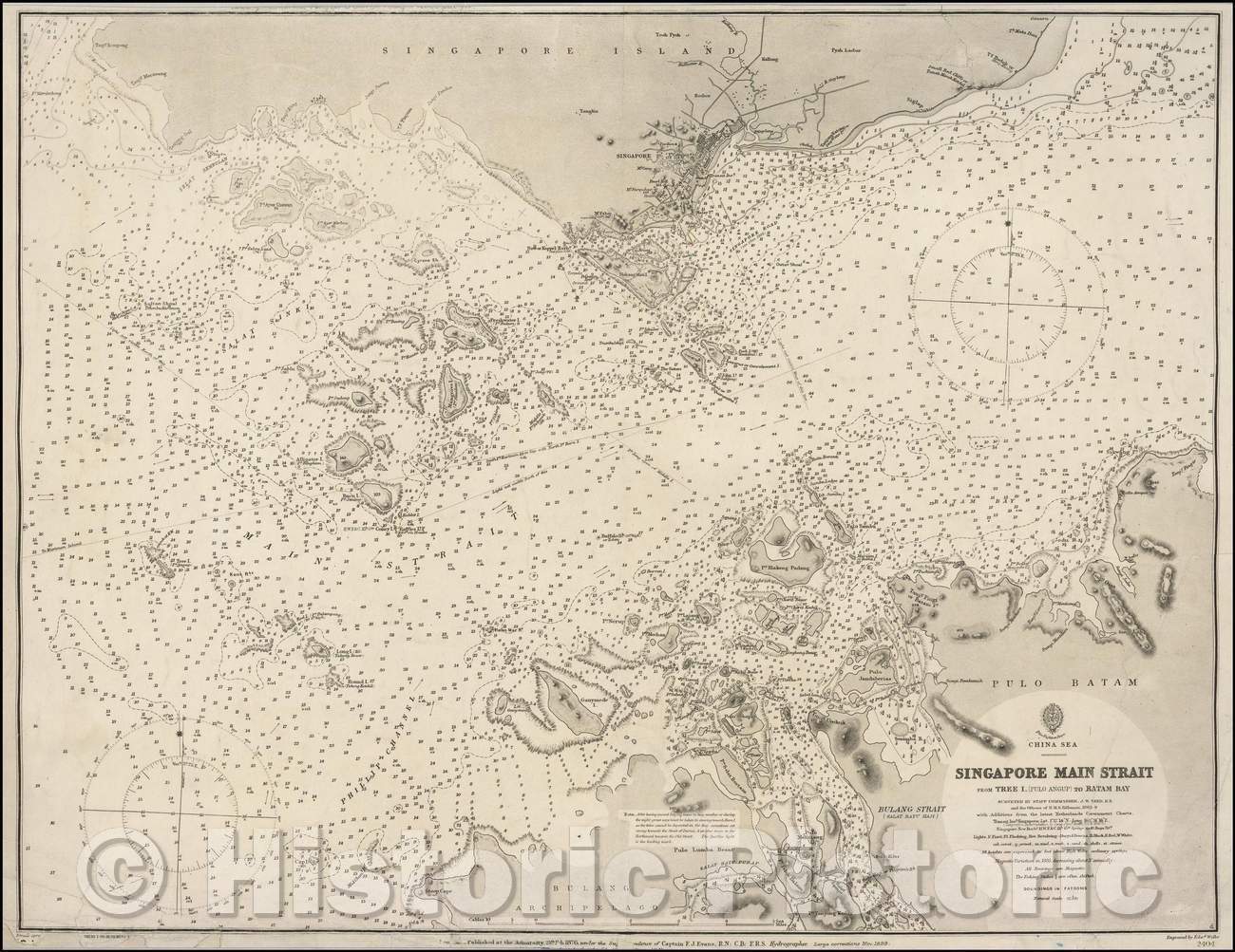 • .Historic Map - Singapore Main Strait From Tree I. (Pulo Angup) to Batam Bay Surveyed, 1867, British Admiralty - Vintage Wall Art