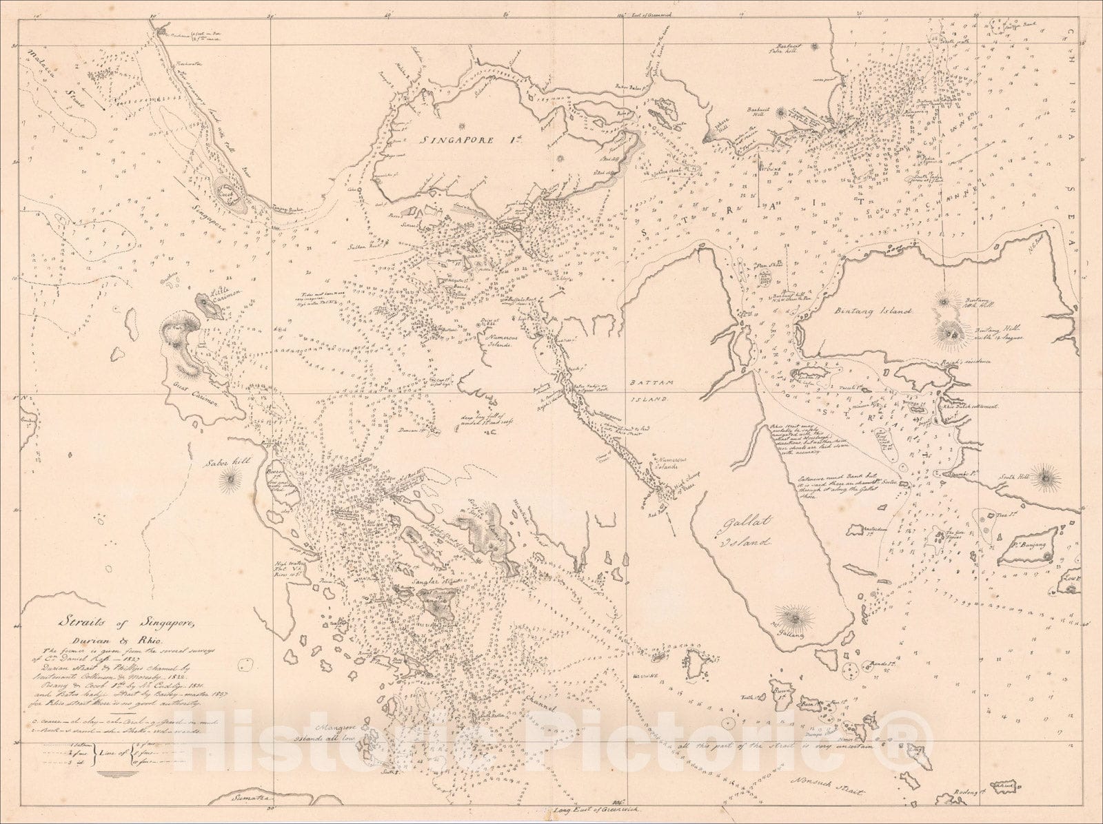 Historic Map : Straits of Singapore, Durian and Rhio, c1841, Anonymous, Vintage Wall Art