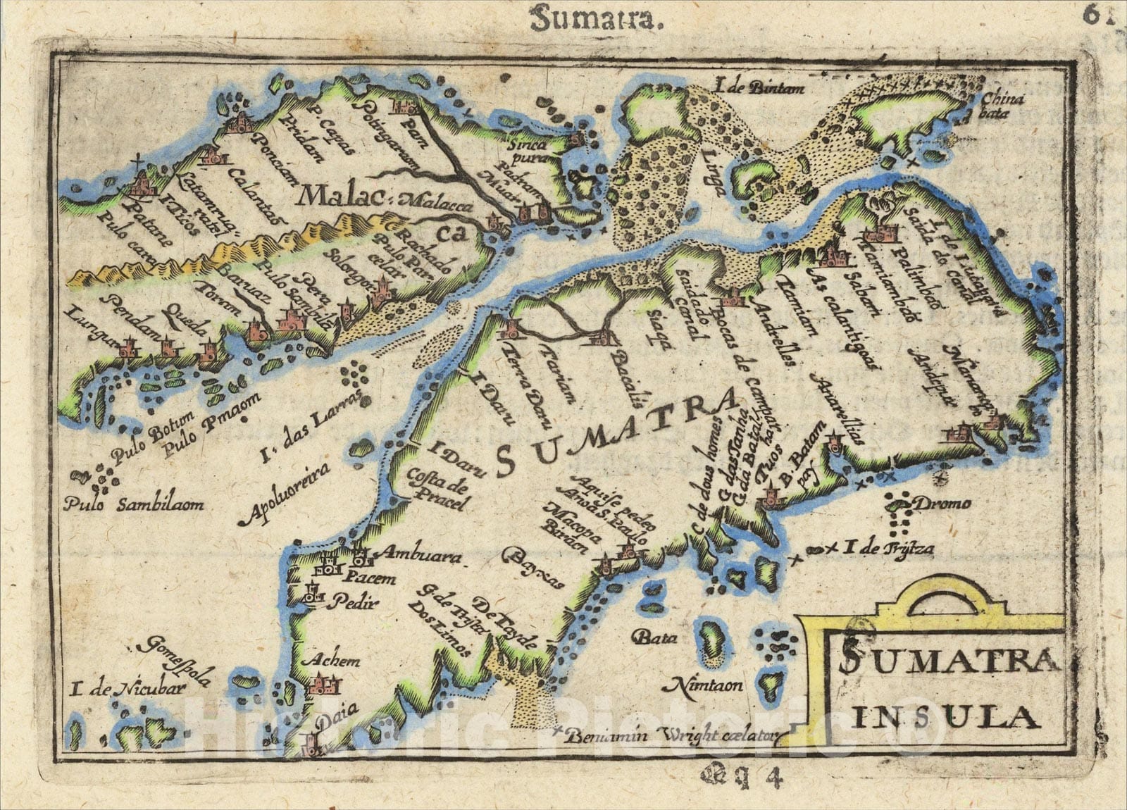 • .Historic Map : Sumatra Insula (Singapore named), 1598, Petrus Bertius, Vintage Wall Art
