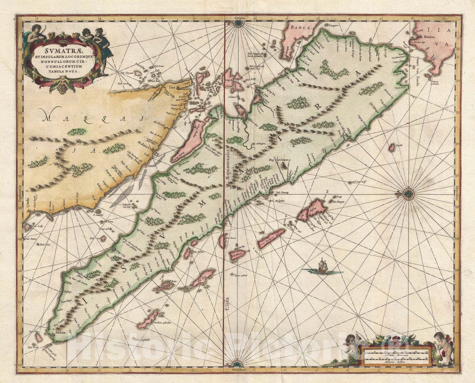 Historic Map : Sumatra, Malaya, and The Straits of Malacca "Singapore", Jansson, 1659, Vintage Wall Art