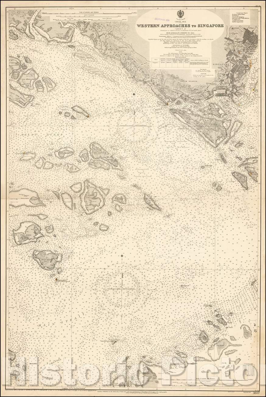 Historic Map - Western Approaches to Singapore, 1927, British Admiralty - Vintage Wall Art
